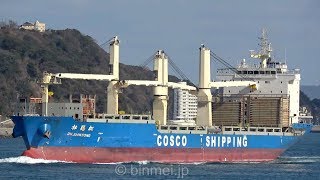 重量物運搬船が2隻のボートを積んで関門東航 ZEA JAKARTA - ZEABORN SHIP MANAGEMENT heavy lift ship