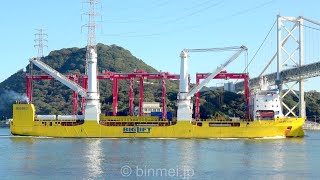 [4K]重量物運搬船がガントリークレーンを載せて関門海峡を西航 佐伯⇒マサン / HAPPY STAR - BIGLIFT SHIPPING heavy lift ship - 2020