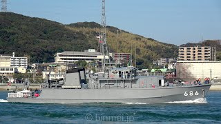 [4K]海上自衛隊すがしま型掃海艇とよしま+うくしま関門東航-2020 / MSC-685 TOYOSHIMA, MSC-686 JS UKUSHIMA - JMSDF minesweeper