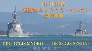 みょうこう+せんだい - 海上自衛隊の護衛艦2隻が関門海峡を西航 JS MYOUKOU & JS SENDAI - JMSDF, destroyer & frigate - 2023