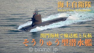 海上自衛隊そうりゅう型潜水艦 関門東航を俯瞰で撮影 JMSDF Soryu-class Submarine - 2023 [4K]