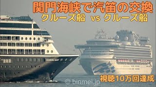 [4K]関門海峡でクルーズ船同士が汽笛を交換 AZAMARA QUEST meets DIAMOND PRINCESS in Kanmon Strait - 2019