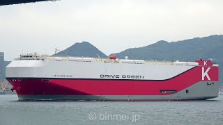 [4K]川崎汽船ドライブ・グリーン・ハイウェイ関門東航 DRIVE GREEN HIGHWAY - "K"Line Post-Panamax vehicles carrier