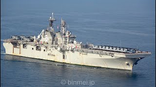 [4K]強襲揚陸艦アメリカ - 甲板にオスプレイ他16機を搭載して佐世保帰港 / LHA6 USS AMERICA - U.S. Navy amphibious assault ship - 2022