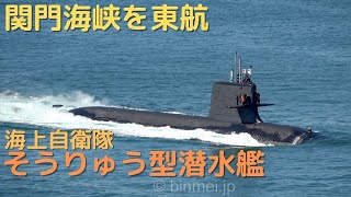 海上自衛隊そうりゅう型潜水艦関門東航-お手振りありがとうございます! JMSDF Soryu-class Submarine - 2023 [4K]
