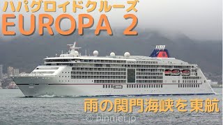EUROPA 2 - Hapag-Lloyd Cruises, cruise ship オイローパ2 - ハパックロイドのクルーズ船が雨の関門海峡を東航 [4K]