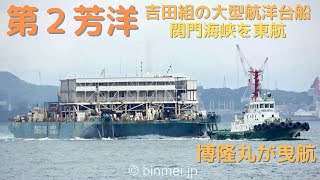 吉田組の大型航洋台船「第2芳洋」関門東航 曳航は博隆丸 No.2 HO-YO - YOSHIDA-GC, 13,600 tons work barge