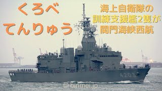 海上自衛隊訓練支援艦くろべ・てんりゅう関門海峡西航 JS KUROBE and JS TENRYU - JMSDF training support vessel - 2023 [4K]
