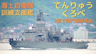 海上自衛隊訓練支援艦てんりゅう・くろべ関門海峡東航 JS TENRYU and JS KUROBE - JMSDF training support vessel - 2023 [4K]