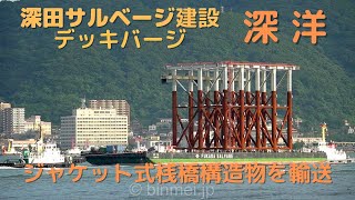 ジャケット式桟橋の構造物を輸送 - 深田サルベージ建設のデッキバージ 深洋 / SHINYO - FUKADA SALVAGE & MARINE WORKS deck barge - 2023