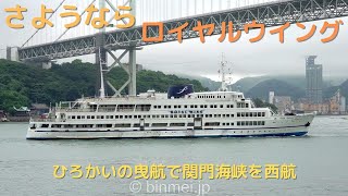 ロイヤルウイング ひろかいに曳航され関門海峡を西航 63-year-old retired restaurant ship ROYALWING towed by HIROKAI [4K]
