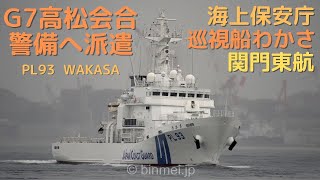 海上保安庁 巡視船わかさ 高松のG7会合警備へ関門東航 PL93 WAKASA - Japan Coast Guard Kunigami-class patrol vessel - 2023 [4K]