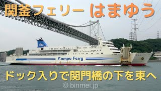 関釜フェリー はまゆう ドック入りで関門橋下を東航 / HAMAYUU - Kanpu Ferry ro-ro/passenger ship - 2023 [4K]