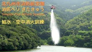 空中消火訓練 - 北九州市消防航空隊消防ヘリ きたきゅう Kitakyushu City Fire Department Air Corps fire helicopter training [4K]