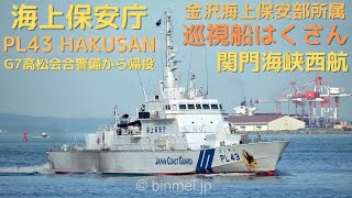 G7高松会合警備より帰投 海上保安庁 巡視船はくさん 関門西航 PL43 HAKUSAN - Japan Coast Guard Aso-class patrol vessel - 2023 [4K]